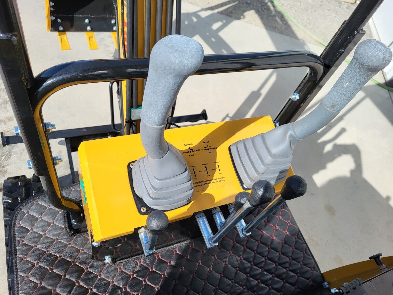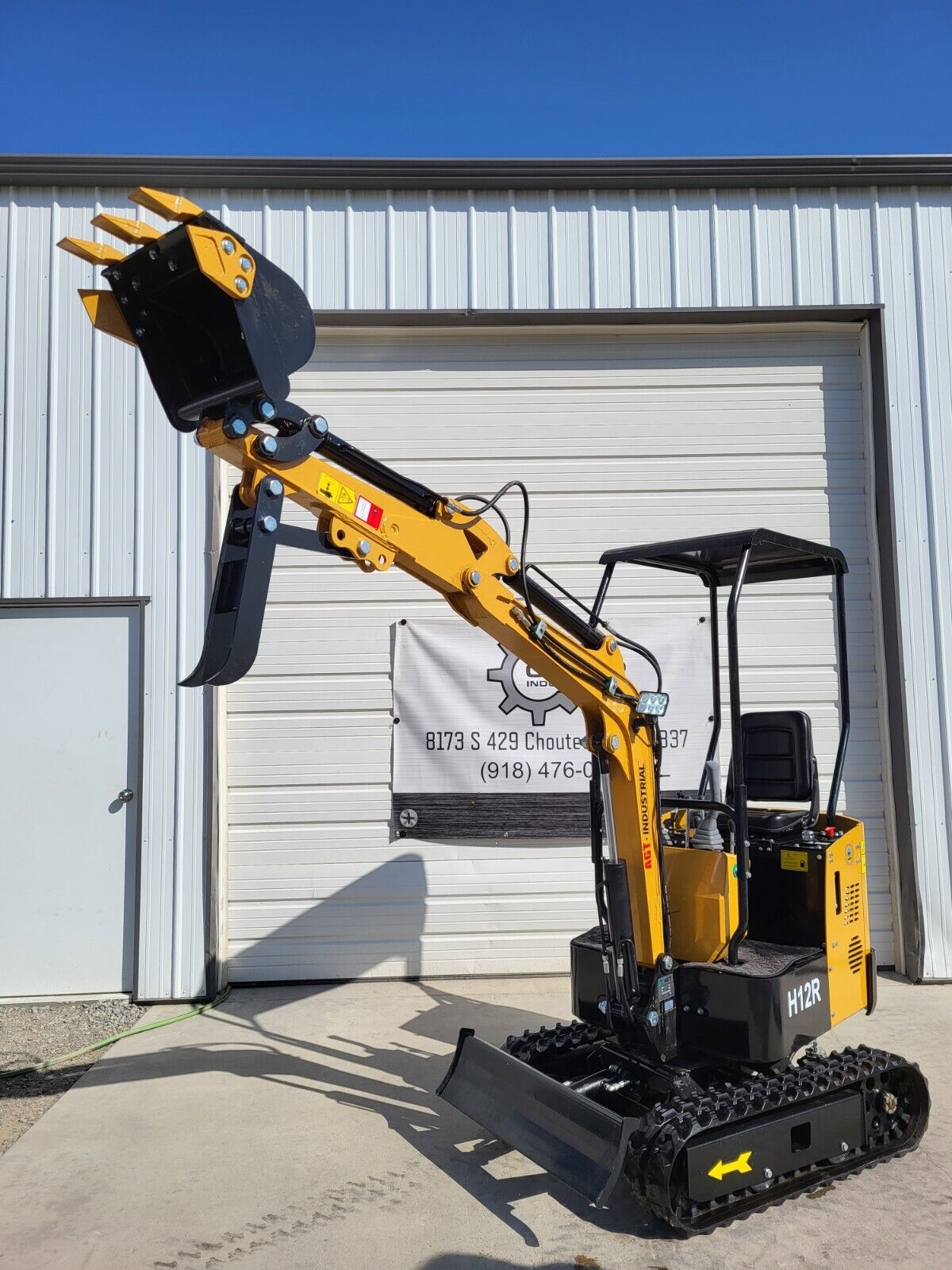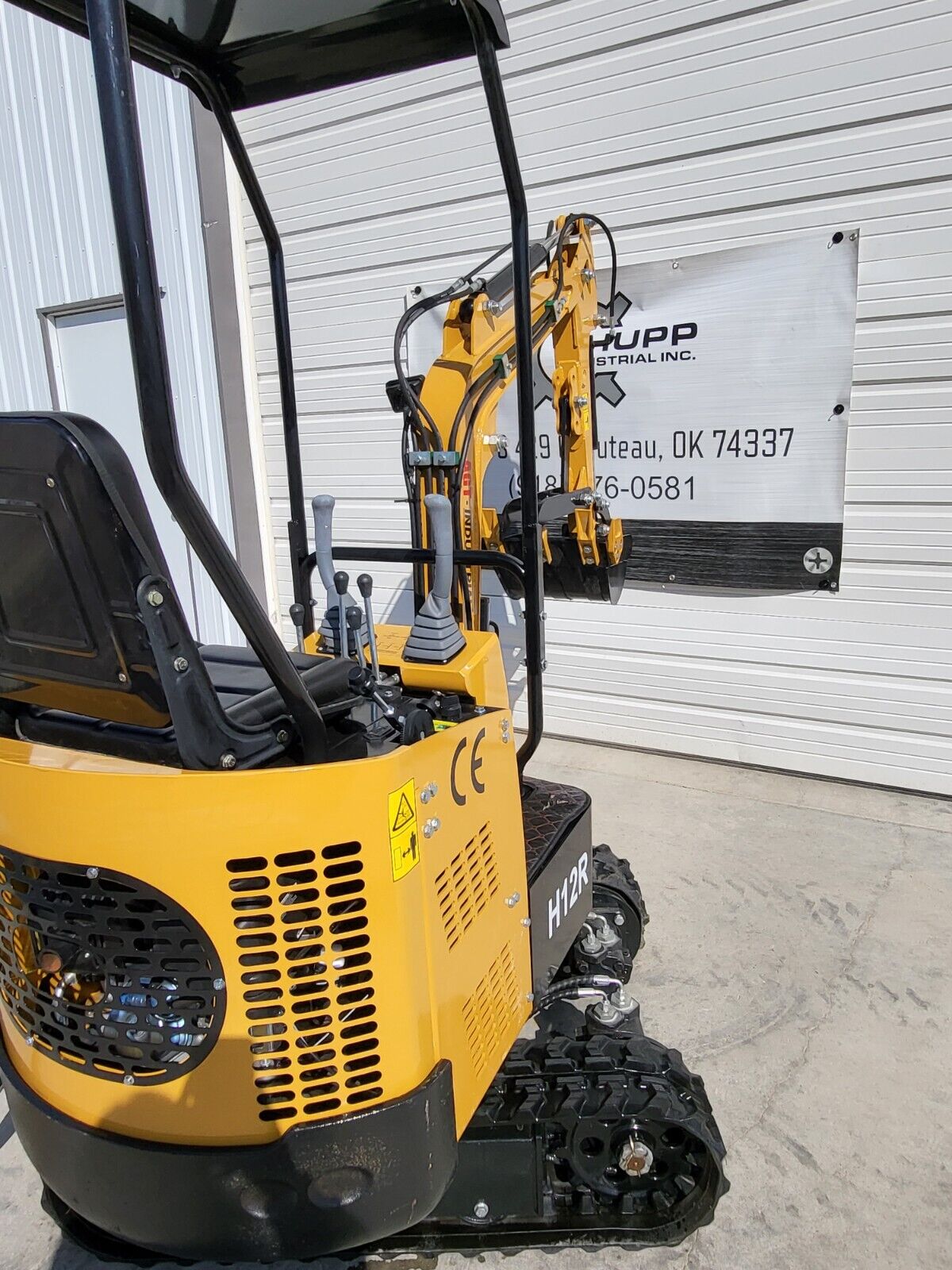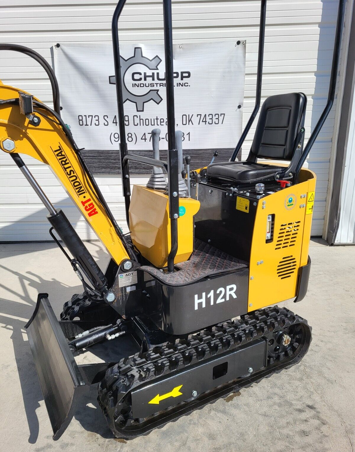 The H12R AGT Mini Excavator is powered by a 13.5 HP RATO gasoline engine and has an operating weight of 2000 lbs, offering a compact yet powerful solution for a variety of small-scale excavation projects. It features a 16-inch wide digging bucket, a fixed thumb for better grip and handling of materials, and a backfill blade for efficient grading. The mini excavator has a max digging depth of 65 inches, a max digging height of 94.5 inches, and a max digging distance of 118 inches, providing versatility for working in tight spaces. With 7-inch wide rubber tracks, a 2 ft. 8 in. stick, and being plumbed for auxiliary hydraulics, it is well-suited for a wide range of attachments. The lift capacity is 475 lbs, and the bucket capacity is 1.06 cubic feet, making it great for tasks like landscaping, trenching, small demolitions, and digging foundations.