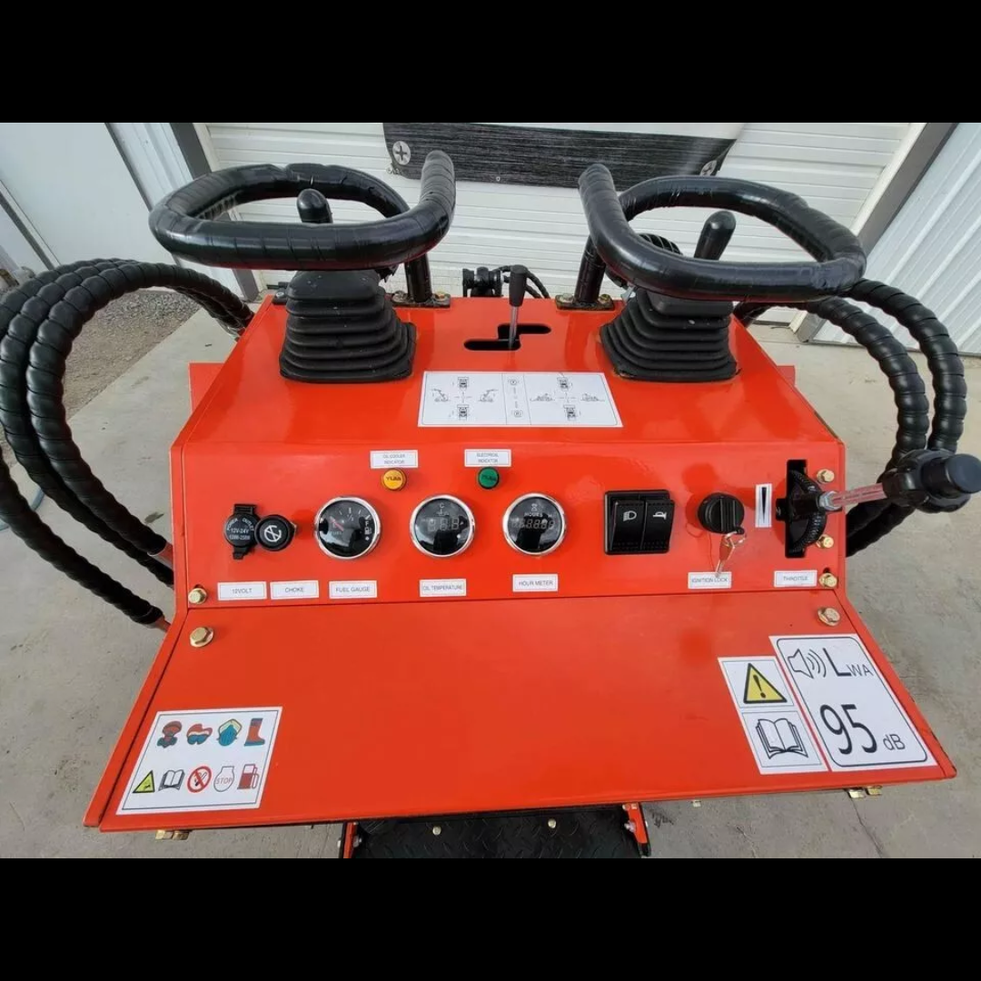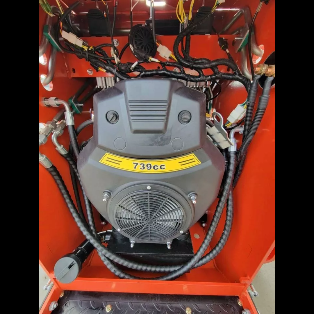 This skid steer is powered by a reliable RATO 23HP gasoline engine, commonly used in outdoor power equipment for brands like Poulan, DR Power, and Harbor Freight. It offers impressive performance with an output of 23 horsepower at 3600 RPM and a fuel consumption rate of 6.7 L/h. The engine features electric start for convenience and easy operation.