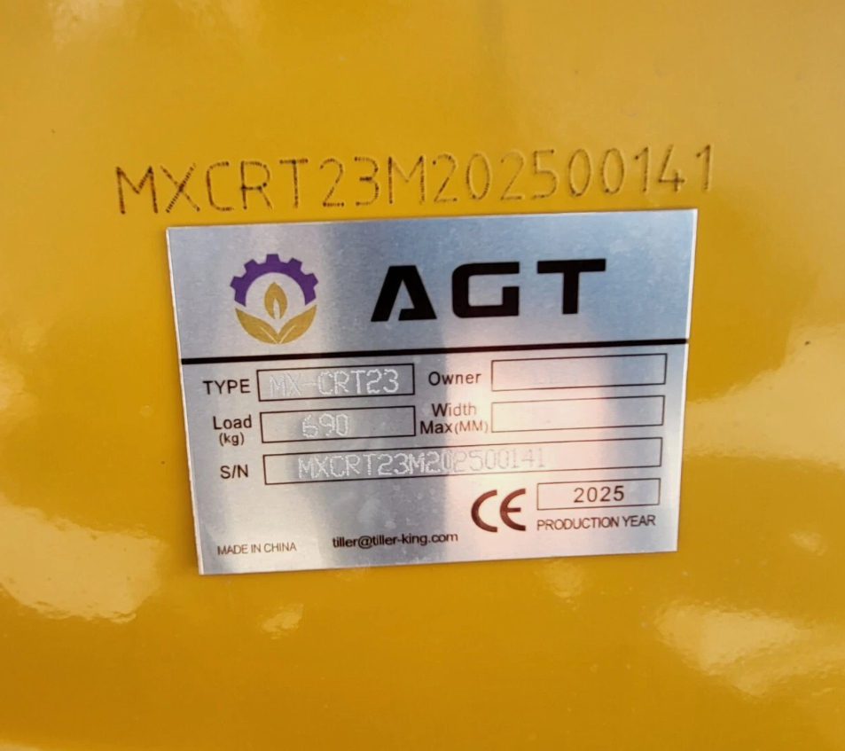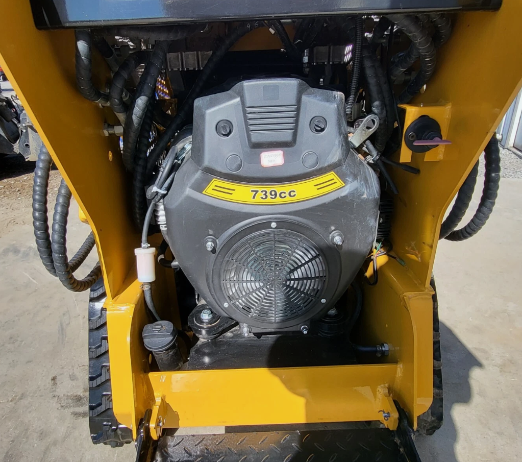 The AGT MX-CRT23 mini skid steer is equipped with a powerful 23HP RATO gasoline engine—the same platform used in Predator engines sold by Harbor Freight, with fully interchangeable and easily available parts both in-stock and online. Compatible with Toro Dingo mini skid steer attachments, this machine also works with our grapples, pallet forks, augers, and brooms. It offers a tested lift capacity of 640 lbs with a 200 lb operator (not recommended for full-height lifts at maximum load). Designed for efficiency and ease of use, the CRT23 features electric start, auxiliary hydraulics, a hydraulic oil cooler, work lights, and a changeable bucket. With 22.5 net HP, 3,190 psi hydraulic pressure, 2.5 mph travel speed, and 7″ tracks, the AGT MX-CRT23 delivers reliable power and smooth operation for landscaping, construction, and agricultural applications.