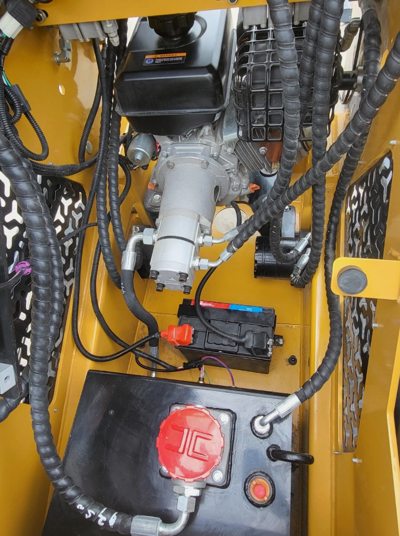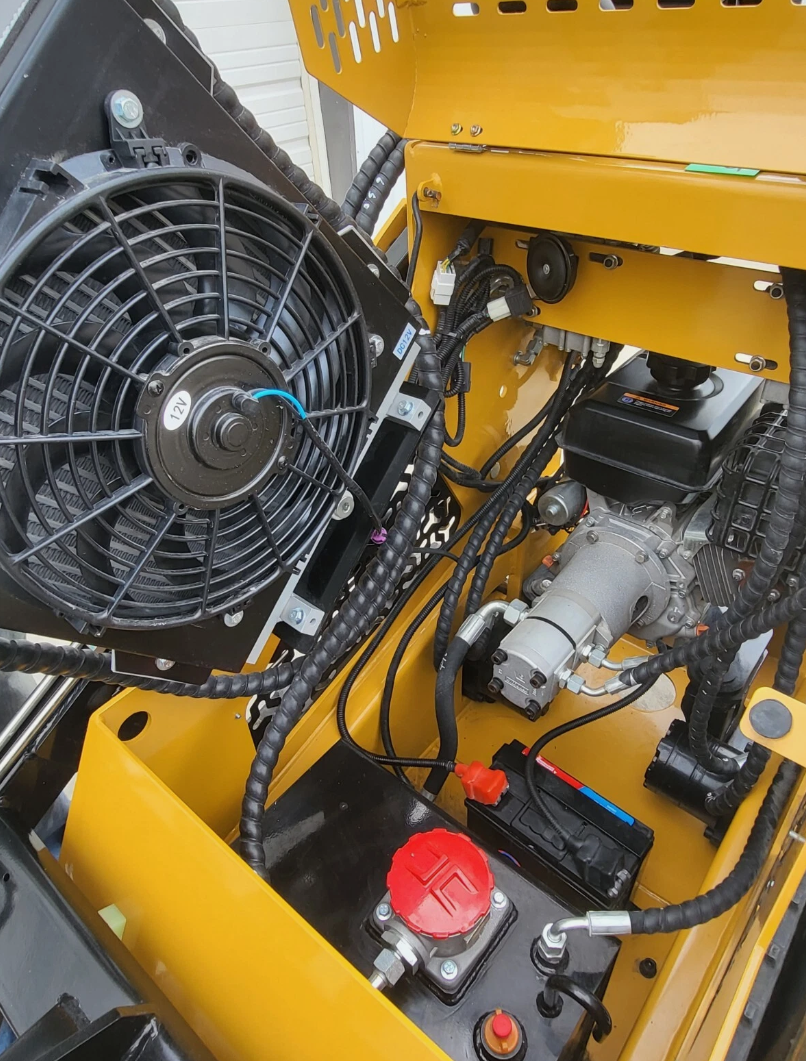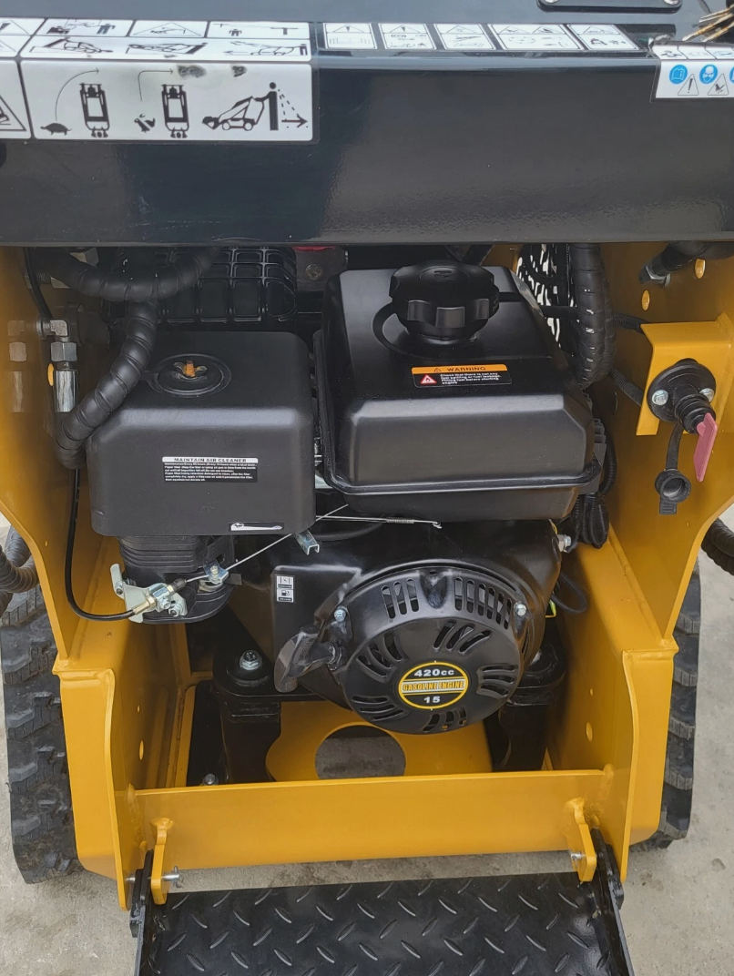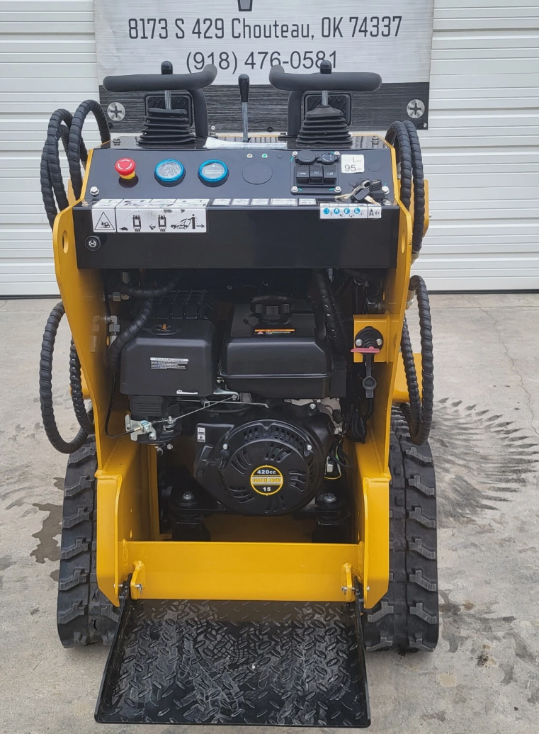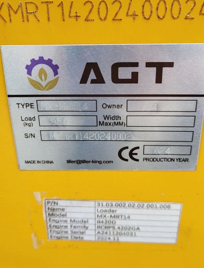 The AGT MX-MRT14 Stand-On Mini Skid Steer is powered by a reliable 13.5HP RATO gasoline engine—the same platform as the Predator engine sold by Harbor Freight, with fully interchangeable and easily sourced parts. Compact yet capable, it delivers a 650 lb lift capacity, 2.5 mph travel speed, and a 62″ maximum dump height. This model is compatible with Toro Dingo mini skid steer attachments, and we also offer grapples, pallet forks, augers, and brooms to fit. Standard features include auxiliary hydraulics, electric start, a hydraulic oil cooler, work lights, and a changeable 44″ bucket. With its 7″ tracks, durable 2,064 lb frame, and smooth hand controls, the MX-MRT14 is built for efficient performance in landscaping, construction, and agricultural applications.