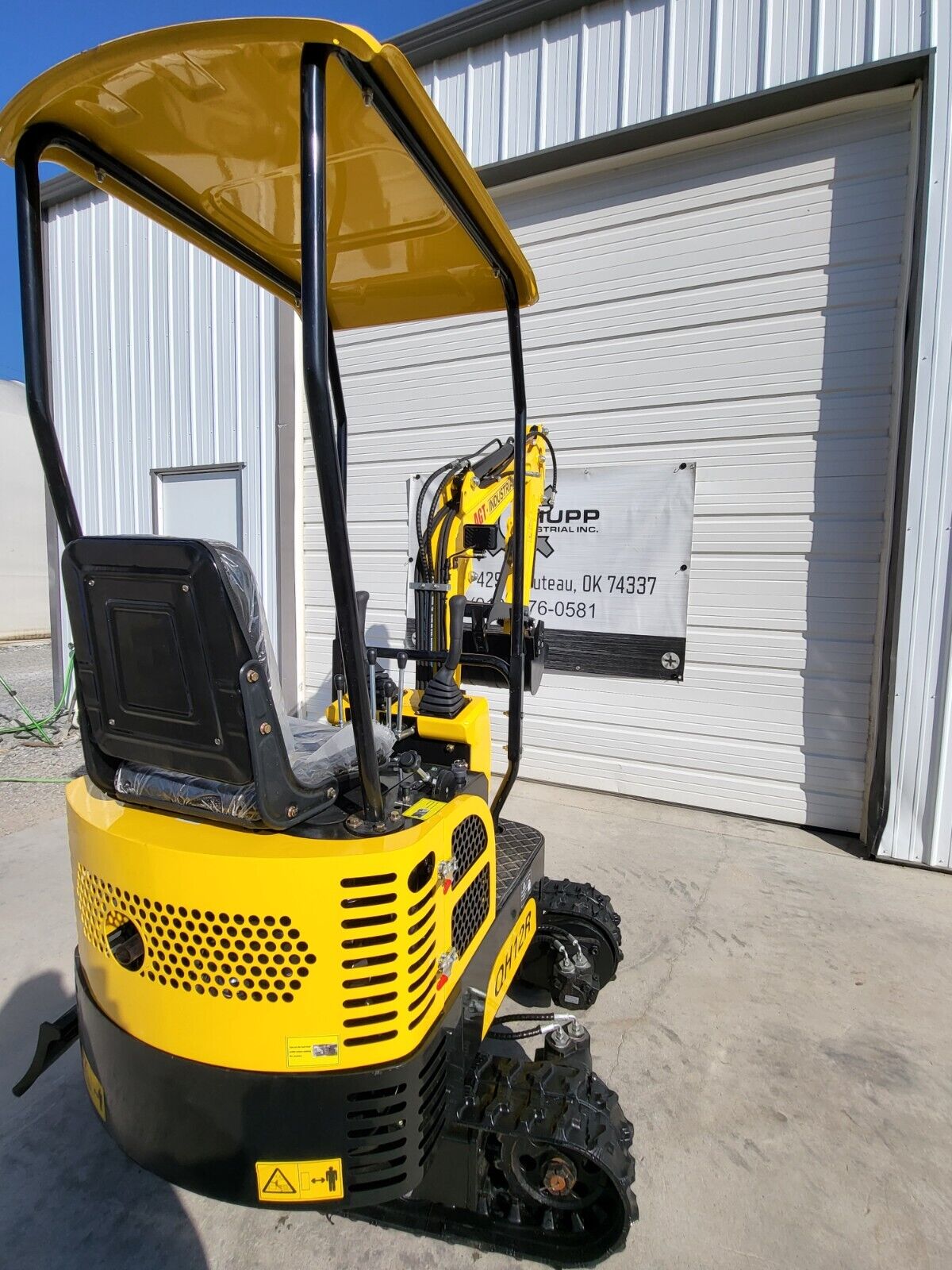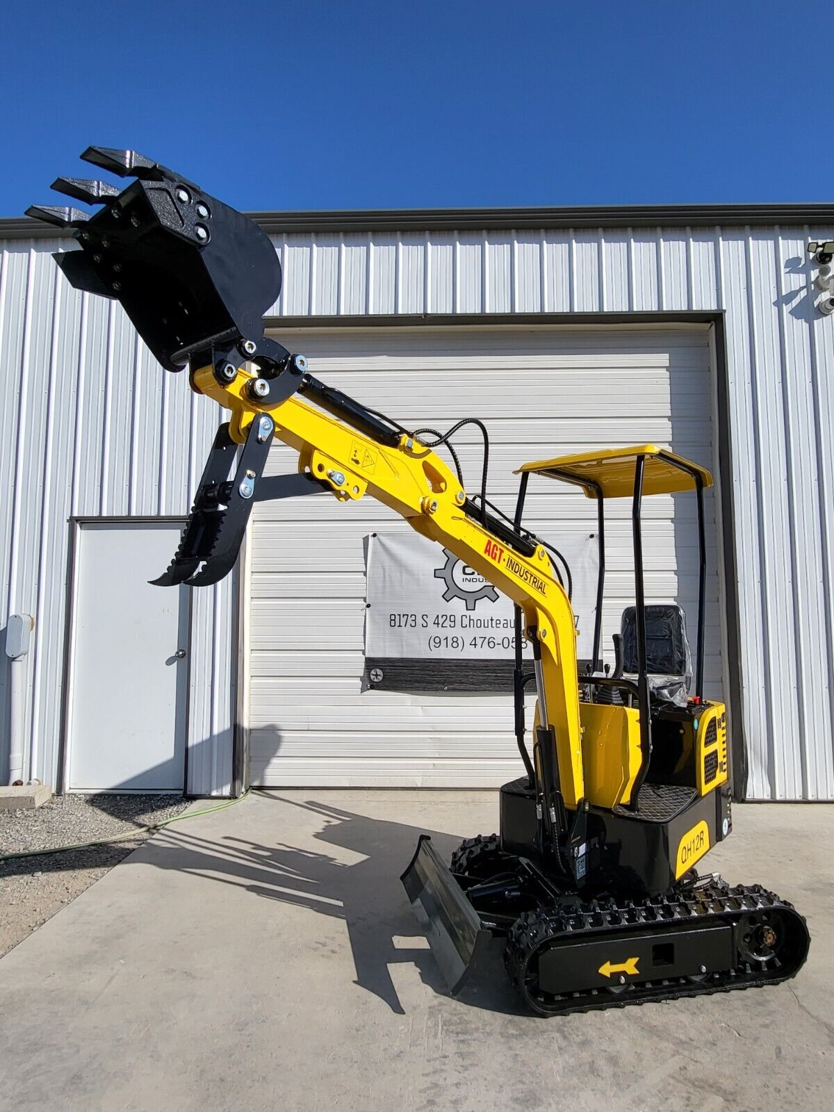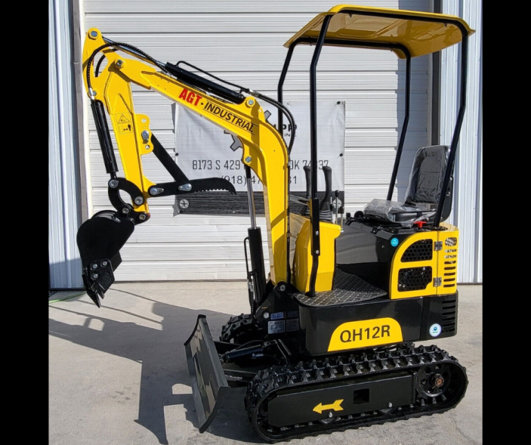 The 1-Ton QH12R AGT Mini Excavator is powered by a 13.5 HP RATO gasoline engine, offering a compact design with a 2000 lb operating weight. This mini excavator is equipped with a 16-inch wide digging bucket, a fixed thumb, and a backfill blade, making it versatile for various tasks. It has a max digging depth of 65 inches, a max digging height of 94.5 inches, and a max digging distance of 118 inches, allowing for efficient performance in tight spaces. The machine also features 7-inch wide rubber tracks, a 2 ft. 8 in. stick, and is plumbed for auxiliary hydraulics, providing additional flexibility for a range of attachments. With a lift capacity of 475 lbs and a bucket capacity of 1.06 cubic feet, it’s perfect for landscaping, trenching, and small-scale construction projects. The mini excavator also includes a toolbox and maintenance items for convenience and ease of use.
