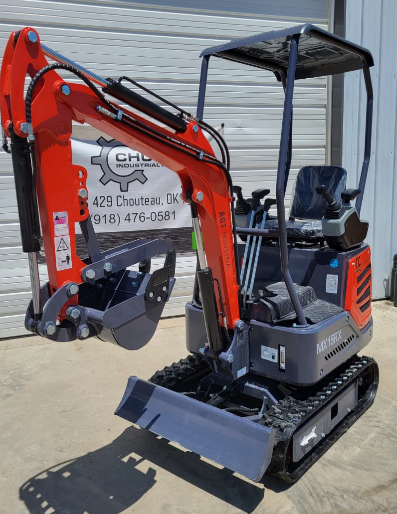 The AGT/CFG MX15RX 1-Ton Mini Excavator is a compact, versatile machine built for small to mid-sized projects where precision and maneuverability are key. Powered by a dependable 13.5HP RATO R420D gasoline engine, it features auxiliary hydraulic plumbing, a fixed thumb, a 14-inch digging bucket, and 7-inch rubber tracks for stability and traction. With an operating weight of 2,315 lbs, a maximum digging depth of 65 inches, and a maximum digging radius of 112 inches, this excavator delivers reliable performance for trenching, landscaping, and utility installation. Its backfill blade makes grading and leveling simple, while the efficient hydraulic system (23.5 Mpa pressure, 6.2 GPM flow rate) ensures smooth operation. Compact at just 39 inches wide, the MX15RX is perfect for work on farms, gardens, and tight construction areas, offering the power, versatility, and efficiency needed for digging, backfilling, and material handling across a variety of applications.
